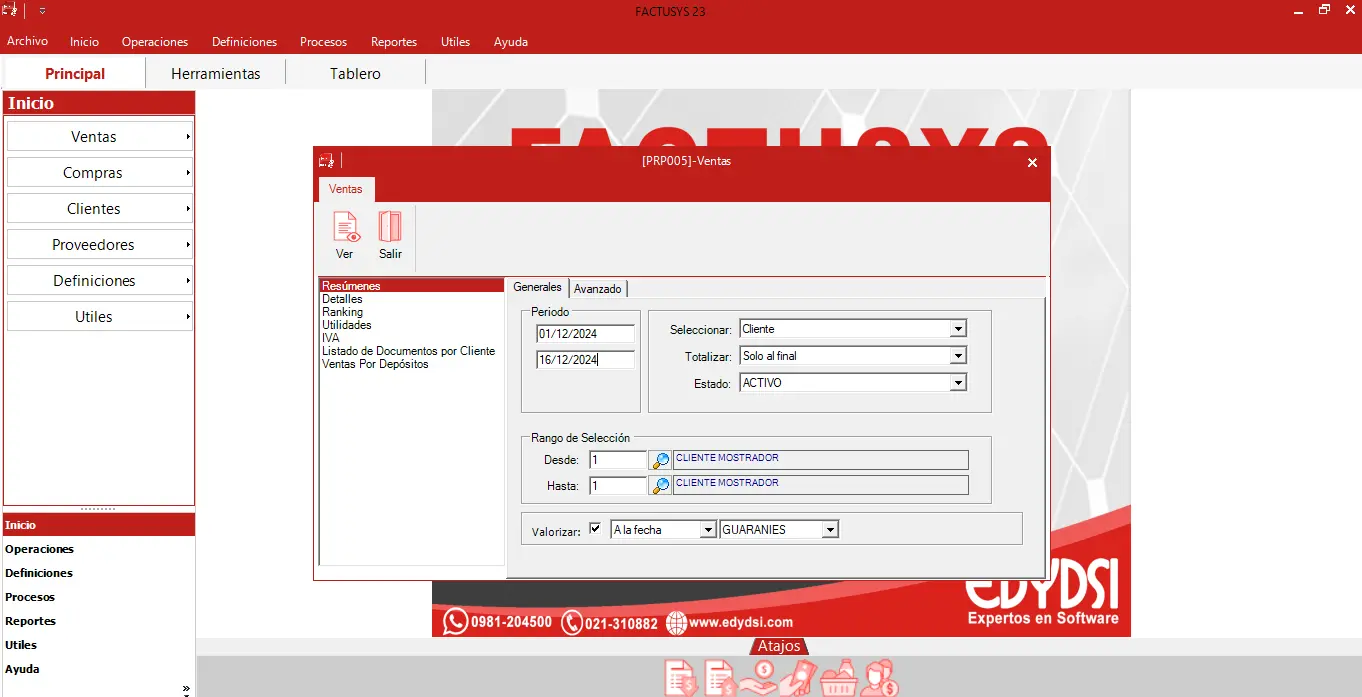 El generador de reportes de FACTUSYS 23 permite personalizar informes con totalizaciones avanzadas, navegación rápida y análisis de subgrupos. Incluye búsquedas precisas, selección de rangos dinámicos y exportación a múltiples formatos.